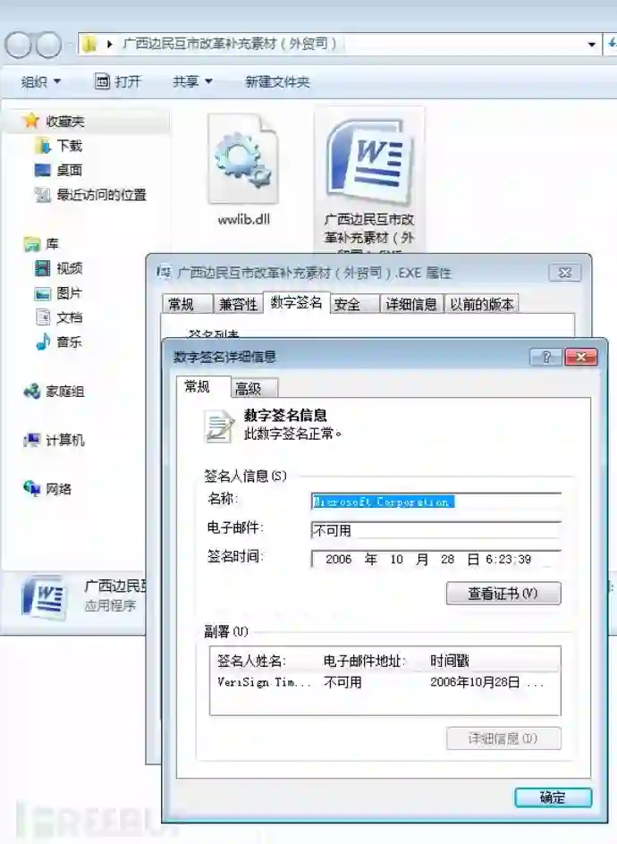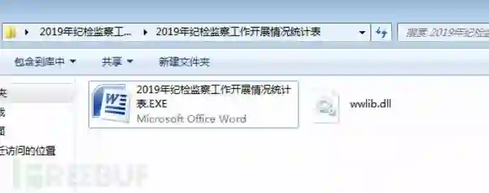 如,攻击首先使用了word的主程序为白文件,加载恶意文件wwlib.dll:
