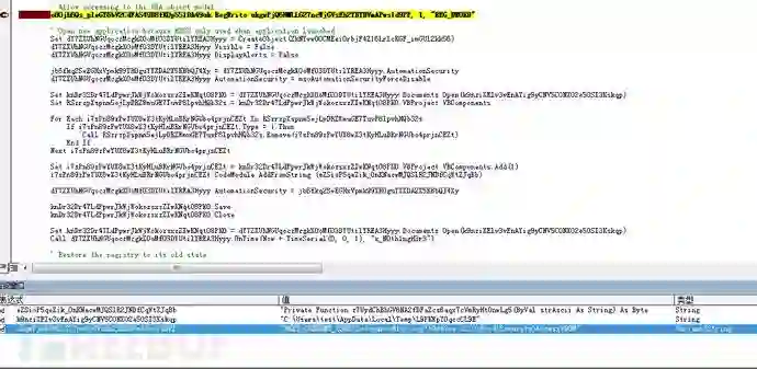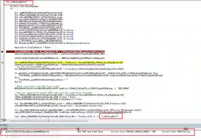 x_N0th1ngH3r3函数同样是解密出一段新VBA宏,同样调用新VBA宏的x_N0th1ngH3r3函数:
