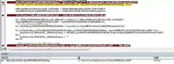 执行宏后,首先会复制原始文档到%temp%下,命名为随机名文件: