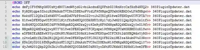 360PluginUpdater.bat的功能是输出加密脚本到360PluginUpdater.dat,完成后将其重命名为360PluginUpdater.js,并执行他: