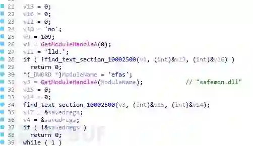 读取自身.text区段地址,如果没读取成功就读取safemon.dll的: