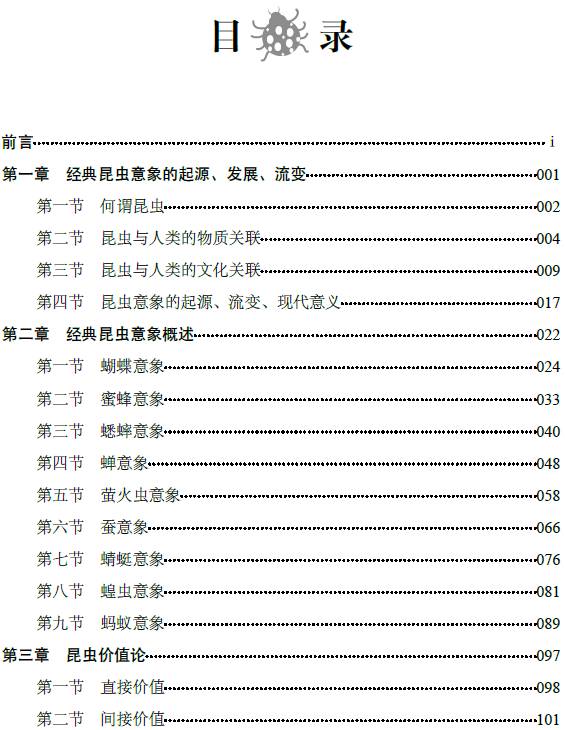 《昆虫意象的哲学观照》共分六章,第一章主要是纵向源流梳理,阐释经典昆虫意象的起源、发展、流变;第二章,横向展开,从历代经典诗歌中,凝练昆虫意象的内涵,阐释诗意背后的科学;第三章是昆虫价值论,主要从物质与文化,直接与间接两方面论述昆虫的多元价值;第四章阐释昆虫文化的哲学内涵;而第五章(昆虫意象的当代诠释)与第六章(昆虫意象的多维视角)应该是第三、第四章的纵向提升与横向绵延。如果说,这本小书有何中心思想,那就是:小小昆虫,大有乾坤;以虫为鉴,可察天地之道。本书适合普通高等院校的本科生阅读,也可供对昆虫科学、科学人文化与昆虫文化的有兴趣的读者阅读使用。
