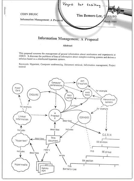 森德尔在建议书的封面上批示“Vague,but exciting”,意思是“不够明确,但令人兴奋”,可能森德尔认为发展网络技术并不是CERN的官方项目?