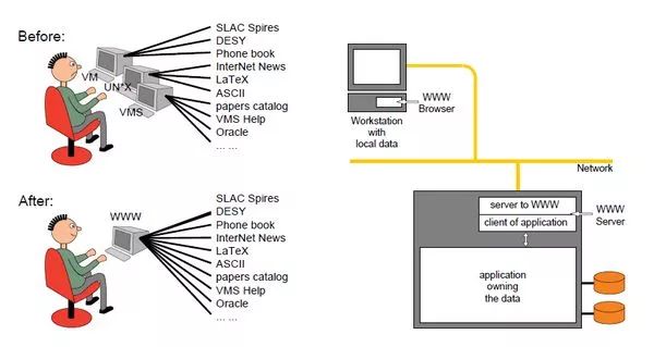 20世纪80年代初期,互相连接的电脑网络已形成,只是由于人们使用的计算机品牌不同,因而保存文档、菜单等文件的格式各不相同,复杂的操作过程以及网络权限的限制对因特网的发展有不小的阻碍。