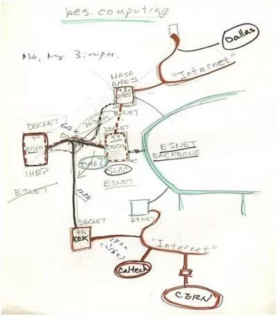 中美两国科学家1991年草拟的IHEP-SLAC联网设计图(图片来自网络)