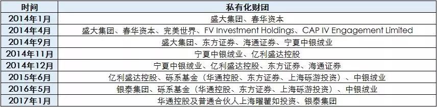 2014年9月,境外机构从盛大游戏的买方财团中退出,东方证券、海通证券和宁夏中银绒业三方加入。
