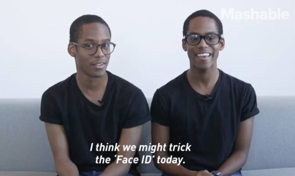 第一次测试是在两对双胞胎中同时进行的,双胞胎中一人注册了 Face ID 的脸部模型,另一人未注册。结果未注册 Face ID 的另两位双胞胎兄弟成功解锁了 iPhone X。为了得到更精确一些的结果,Mashable 将双胞胎兄弟脸上的一些附加物品如眼镜等都摘掉了,并让其中一个兄弟注册 Face ID 。结果再一次显示,Face ID 没能区分出两人的不同之处。