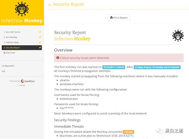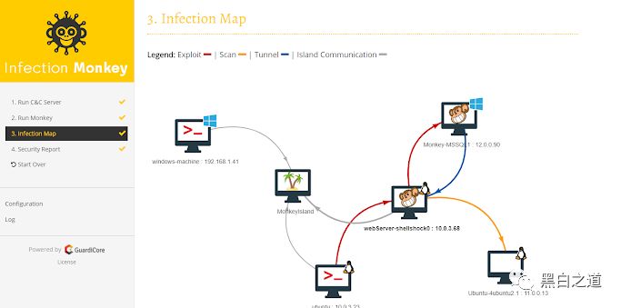 Infection Monkey是一个开源安全工具,用于测试数据中心对外围漏洞和内部服务器感染的弹性。Monkey使用各种方法在数据中心内自我传播,并向集中式Monkey Island服务器报告成功。