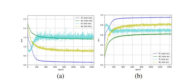 该分析表明,要使NL在CIFAR100上收敛,需要的时间比CIFAR10要长的多,大约是110倍。