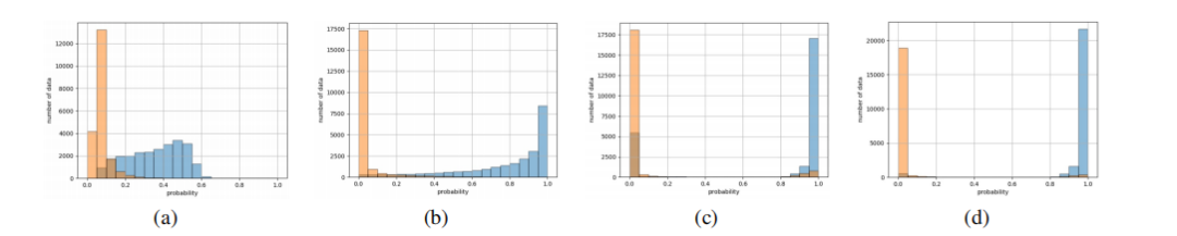 为0.5,Figure3(d)展示了SelPL在经过SelNL处理后训练的结果,几乎所有无噪数据的置信度都接近1。