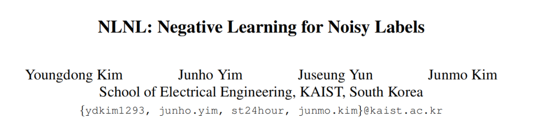 下面要介绍的论文发于ICCV2019,题为「NegativeLearning for Noisy Labels