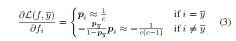 损失函数的梯度减小了,但还会出现一个梯度,以增强与其他类别(包括真实标签