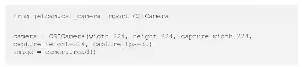 为了获取来自摄像头的视频内容,我使用另一个库 Jetcam。只需要四行代码,就可以运行。