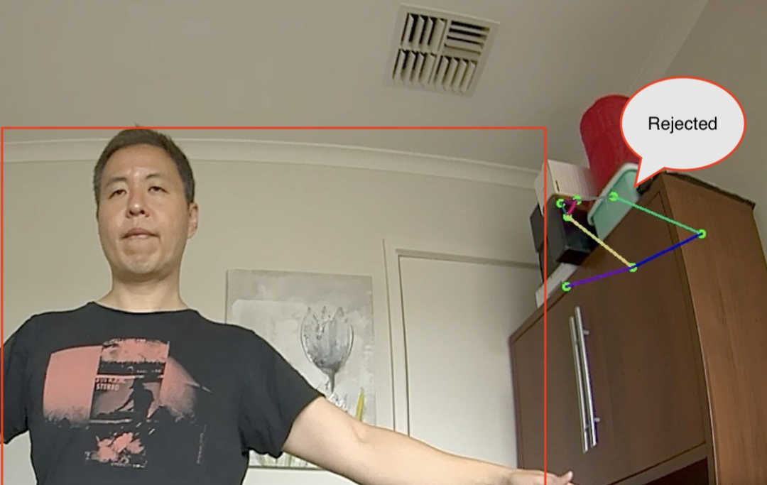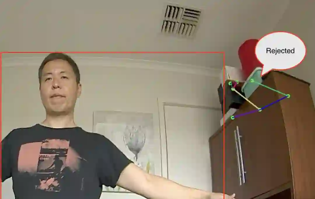 经过一些测试后,我发现有时候这个模型会将随机对象错误地识别为关节点(假正例,如下图所示),这会给 Griffin 的动作控制带来麻烦。