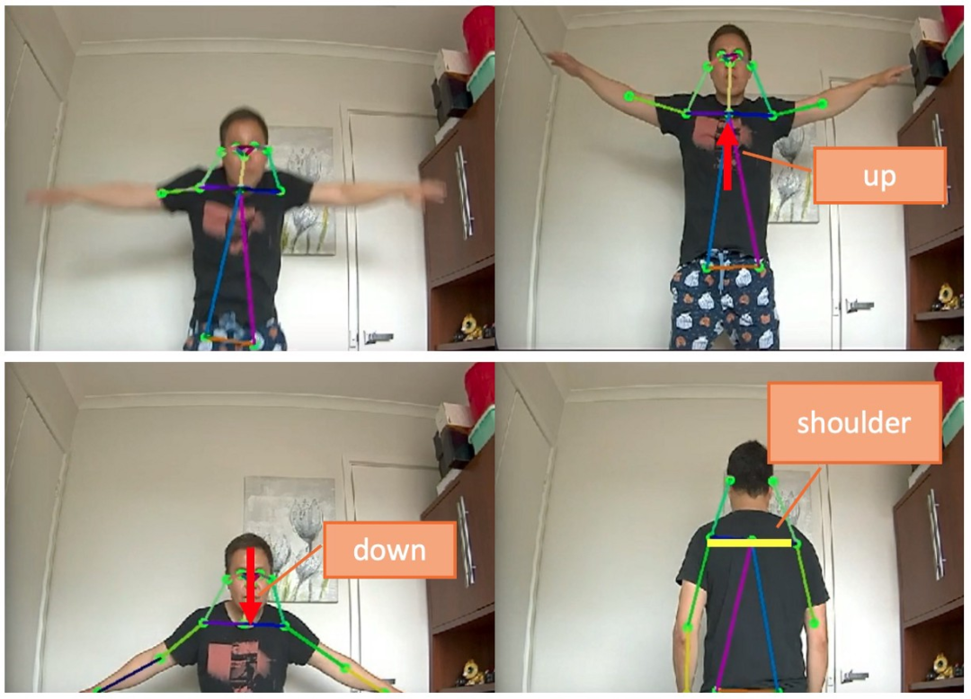 该模块对于将人体姿态估计模块检测到的 6 个关节点动作转换为更具意义的输入至关重要。这包括三种直接的动作映射: