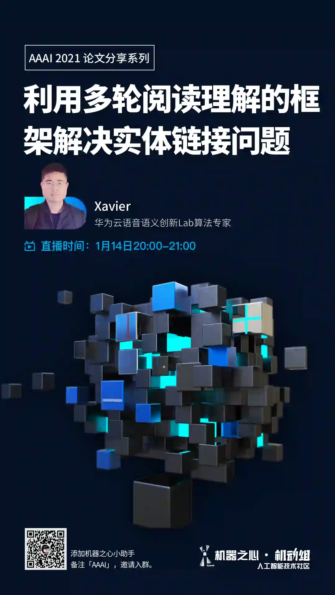 添加机器之心小助手(syncedai5),备注「AAAI」,进群一起看直播。
