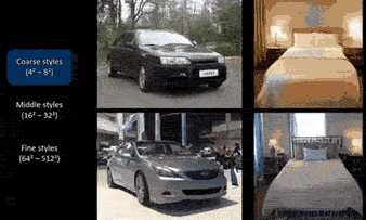 这个新的生成器架构能够将不同的样式,注入到合成网络不同层的相同图像中。在训练期间,我们通过映射网络运行了两个潜在代码和