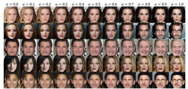 生成的图像。通过改变 alpha,我们可以在潜在空间插入很好的结果。