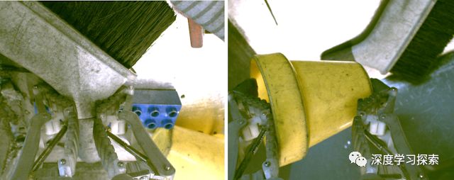 在左侧,抓手握住刷子,背景中有一些物体(黄色杯子,蓝色塑料块)。 在右侧,抓手握住黄色杯子,刷子在背景中。 如果左图像是期望的结果,则良好的奖励功能应该“理解”上面的两个图像对应于不同的对象。