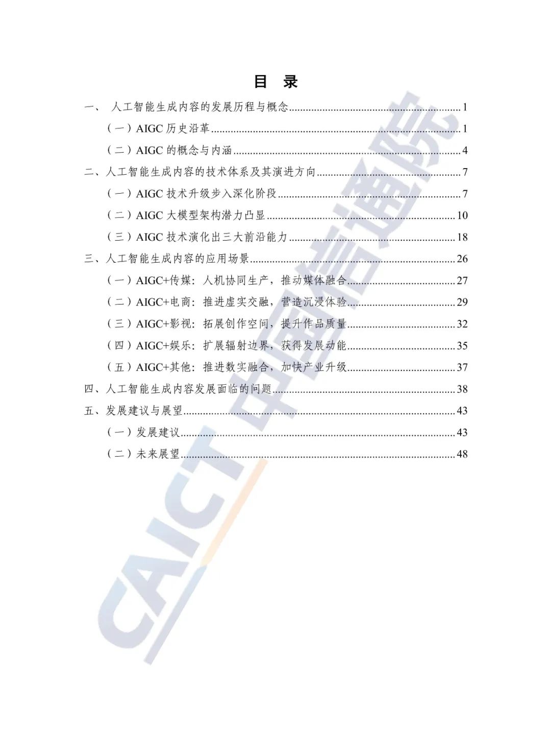 本白皮书对我国人工智能生成内容发展中所存在的问题进行了客观分析,即人工智能生成内容(AIGC)的关键技术、企业管理和政策监管尚未完善,并提出建议对策。白皮书从技术算法、企业管理、政策监管等视角,梳理了人工智能生成内容(AIGC)所暴露出的版权纠纷、虚假信息传播等各种问题,并从政府、行业、企业、社会等层面,给出了人工智能生成内容(AIGC)发展和治理建议。
