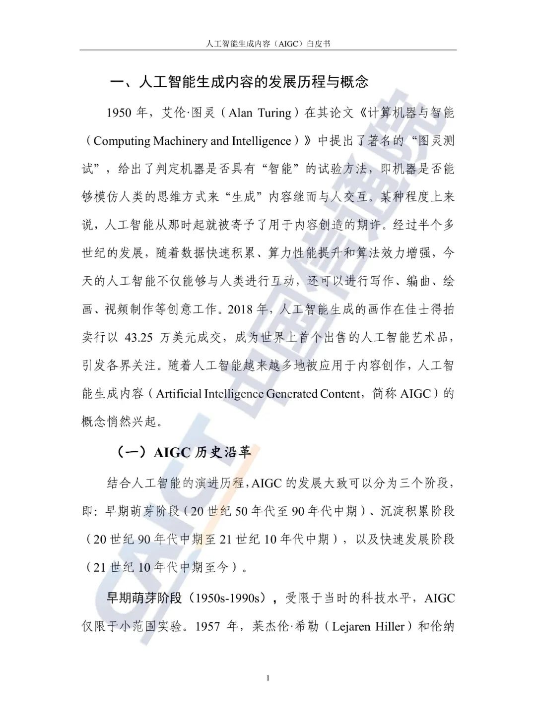 白皮书跟踪梳理了人工智能生成内容的发展演进,重点从技术、应用、治理等维度对人工智能生成内容进行了分析,并从政府、行业、企业、社会等层面,给出了我国发展和治理人工智能生成内容(AIGC)的建议。