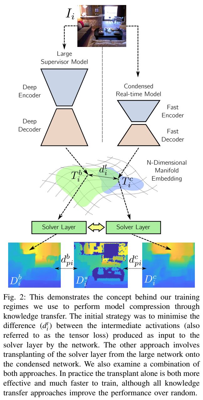 Since the resurgence of CNNs the robotic vision community has developed a range of algorithms that perform classification, semantic segmentation and structure prediction (depths, normals, surface curvature) using neural networks. While some of these models achieve state-of-the-art results and super human level performance, deploying these models in a time critical robotic environment remains an ongoing challenge. Real-time frameworks are of paramount importance to build a robotic society where humans and robots integrate seamlessly. To this end, we present a novel real-time structure prediction framework that predicts depth at 30 frames per second on an NVIDIA-TX2. At the time of writing, this is the first piece of work to showcase such a capability on a mobile platform. We also demonstrate with extensive experiments that neural networks with very large model capacities can be leveraged in order to train accurate condensed model architectures in a “from teacher to student” style knowledge transfer.