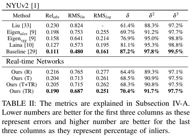 实时框架是搭建一个人类和机器人能够无缝衔接的社会的首要条件。出于这个考虑,作者提出了一种能够在NVIDIA-TX2显卡上以30帧每秒的速度估计深度信息的新颖的实时结构估计框架。