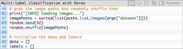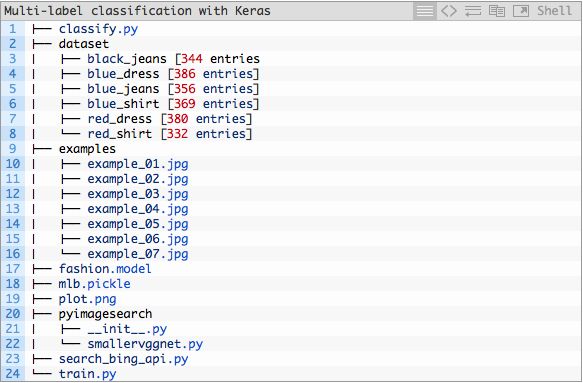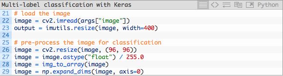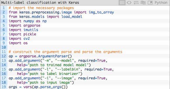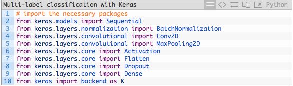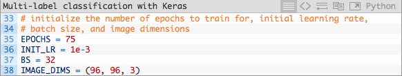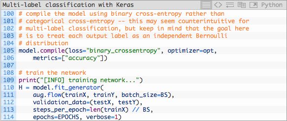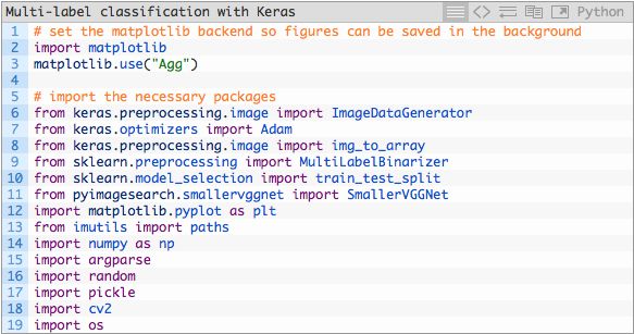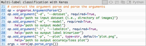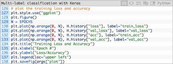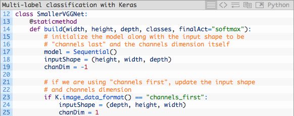 既然我们已经实现了SmallerVGGNet,接下来让我们创建train.py,我们用于训练多标签Keras神经网络的脚本。