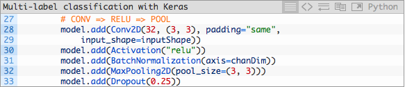 请确保你通过文末的“下载”处获得了源代码和样例图片。获得之后,打开在pyimagesearch模块下的smallervggnet.py文件, 继续: