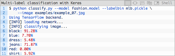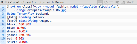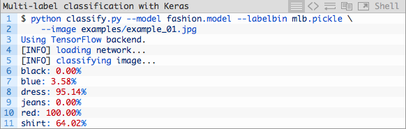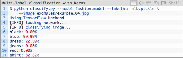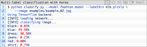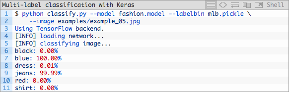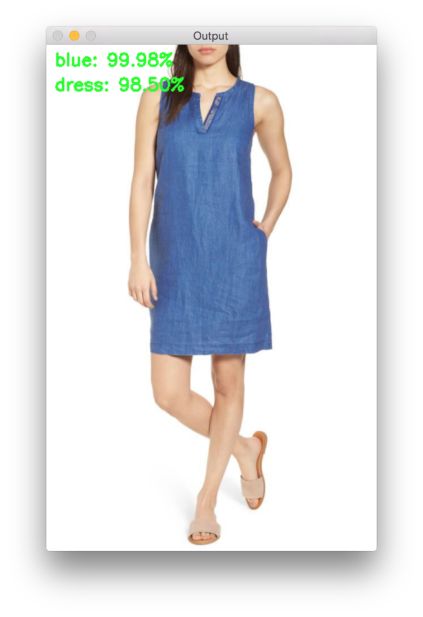 图片5:“蓝色”和“裙子”类标签在我们的Keras多标签图片分类项目的第二次测试中正确给出。