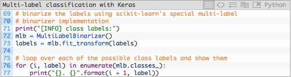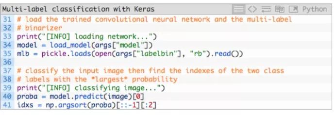 应用Keras执行多标签分类是直观的,它包含两个主要的步骤: