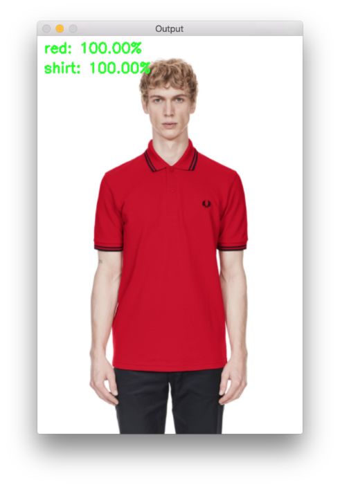 图片6:在100%的置信把握下,我们的深度学习多标签分类脚本正确分类了这件红色Polo衫。