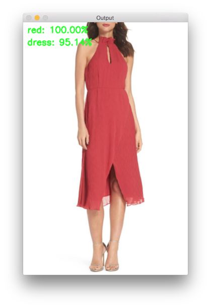 让我们来试一张红色裙子的图片——请注意在运行过程中被处理的三个命令行参数: