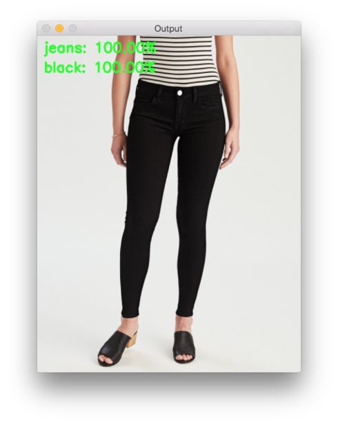 噢不——我们的分类器犯了个大错!我们的分类器报告说该模特身着黑色牛仔裤然而她实际穿着的黑色裙子。