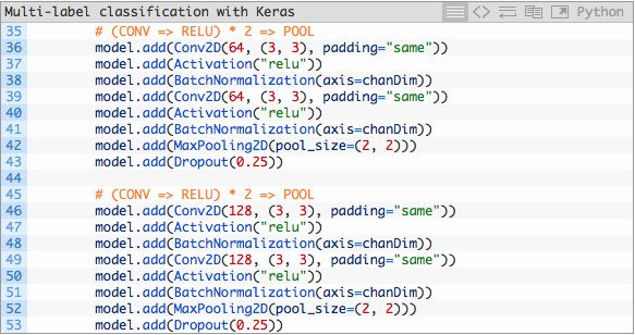 为了完整性,我们将在本教程中实现SmallerVGGNet;然而,我将有关架构/代码的长篇大论转移至我之前的一篇文章——如果你有任何关于架构的问题或是想要了解更多细节,请参阅参阅该文章。如果你希望设计你自己的模型,你会希望有一本我的书:Deep Learning for Computer Vision with Python。