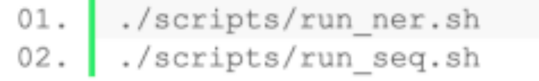 1.在配置完成后,用户输入./scripts/run_seq.sh ,该脚本将进行加入特殊label token,以及对数据集的处理。