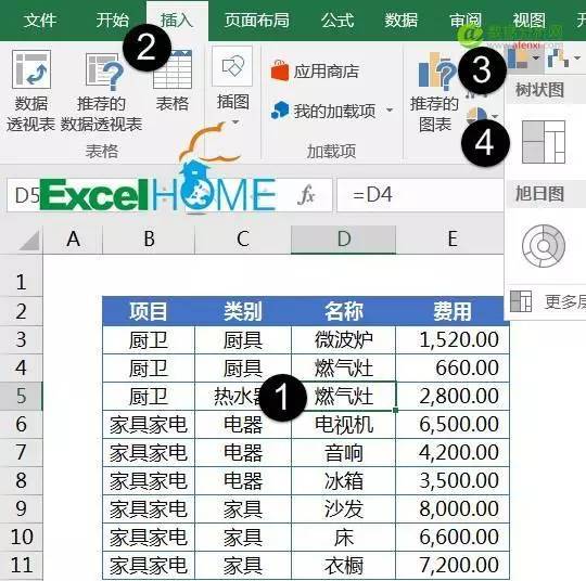 1.选中表内所有数据,单击【插入】-【树状图】。