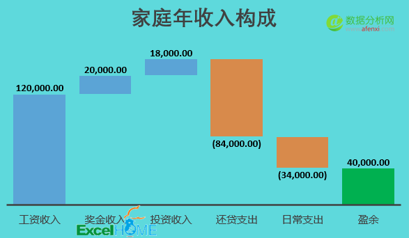 全选表内所有数据,单击【插入】-【瀑布图】。