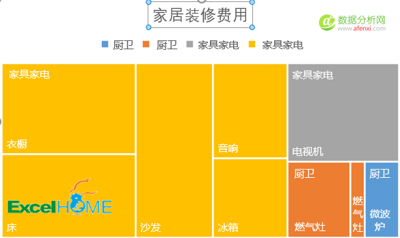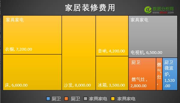 树状图提供数据的分层视图,树分支表示为矩形,每个子分支显示为更小的矩形。树状图用于比较层次结构内的数据相对大小。