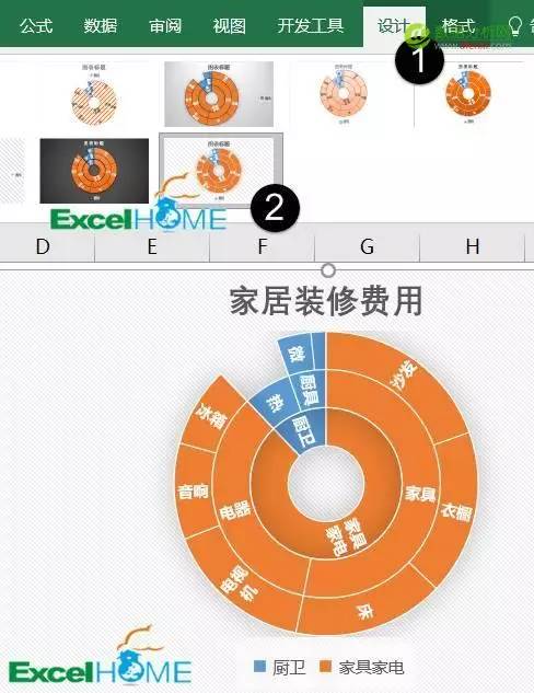 .选中插入的图表,单击【设计】-【图表样式】选择一种样式。
