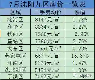 据中国网,截至7月末,沈阳市商品住房均价7499.3元/㎡,同比上涨13.7%。