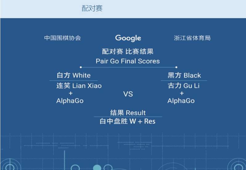 经历过 AlphaGo与柯洁第一场势均力敌,第二场热血沸腾的比赛之后,今天,乌镇围棋峰会进入了配对赛与团体赛的争夺。上午 10:59 分,连笑八段联手 AlphaGo 执白战胜古力九段与 AlphaGo 的组合,赢得了史上首次人机配对赛。而在下午 16::32 时,五位世界冠军组成的团队在与 AlphaGo 的对决中收官阶段认输,团体赛告于段落。