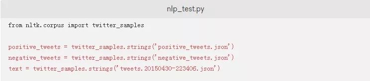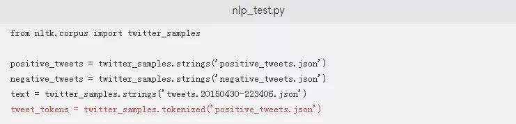 在这个文件中,您首先要导入twitter_samples,以便您可以处理这些数据: