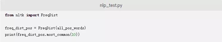 现在您已经编译了推文示例中的所有单词,您可以使用NLTK的FreqDist类找出最常见的单词。将以下代码添加到nlp_test.py文件中: