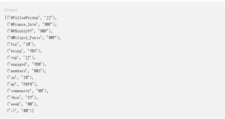 下面是pos_tag函数的输出。