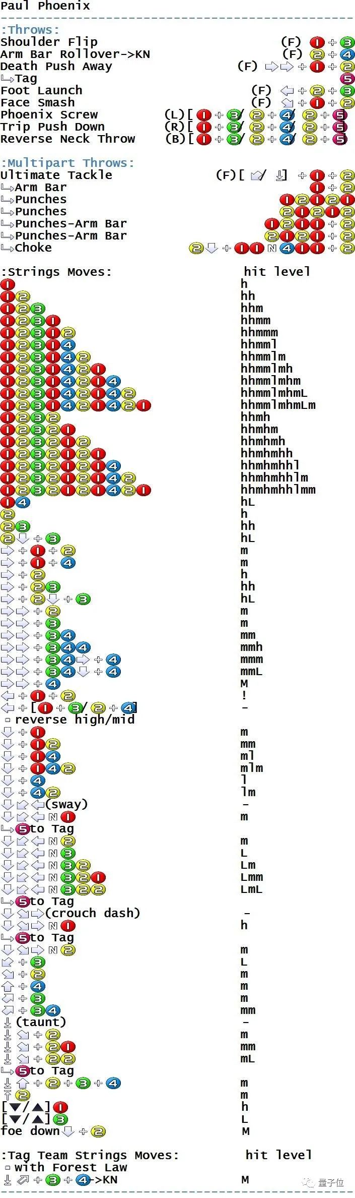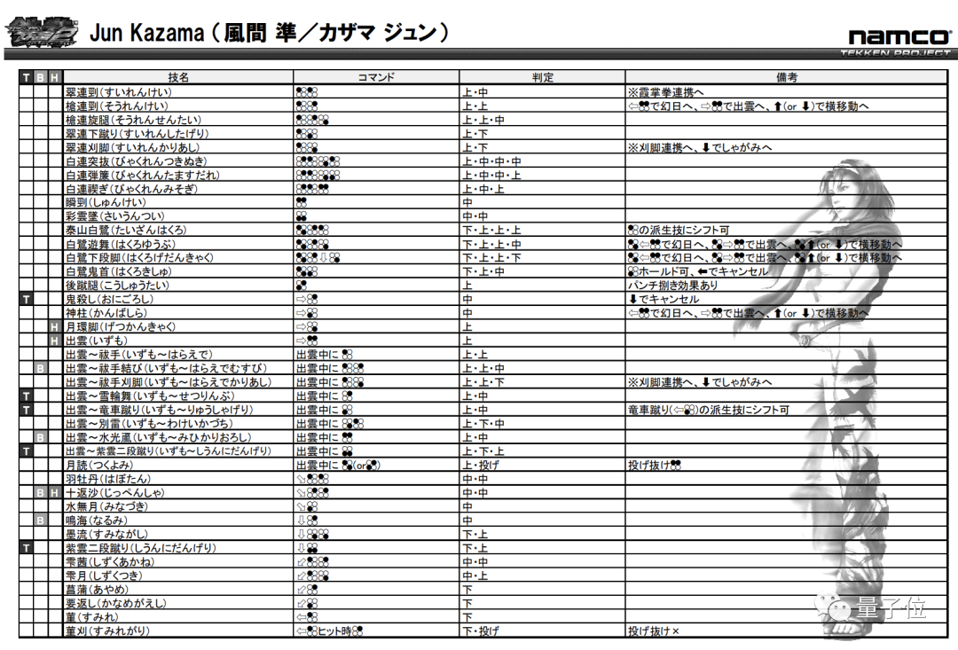 没错,就是那个对新手极不友好的《铁拳》,随便拉一张角色的搓招表感受一下这个复杂度: