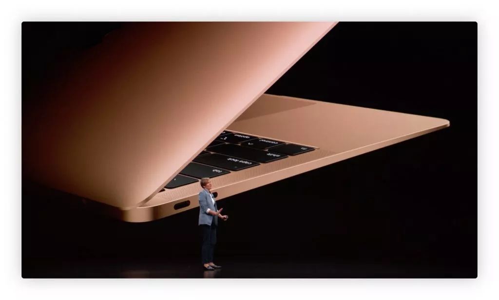 首先,在外观上,新版 MacBook Air 有一些惊喜:其具有 13.3 英寸视网膜屏幕、 FaceTime HD 摄像头、Force Touch 触控板、以及拥有独立 LED 光源的按键。整体外形上,新版 MacBook Air边框相更窄,整体大小也比前一代小 17%,2.75 磅的重量也比前一代轻。而且新 MacBook Air 使用了 100% 可回收铝材料制成,这是苹果的首次实践。此外,新版 MacBook Air拥有两个雷电接口,且雷电接口兼容 USB-C 。