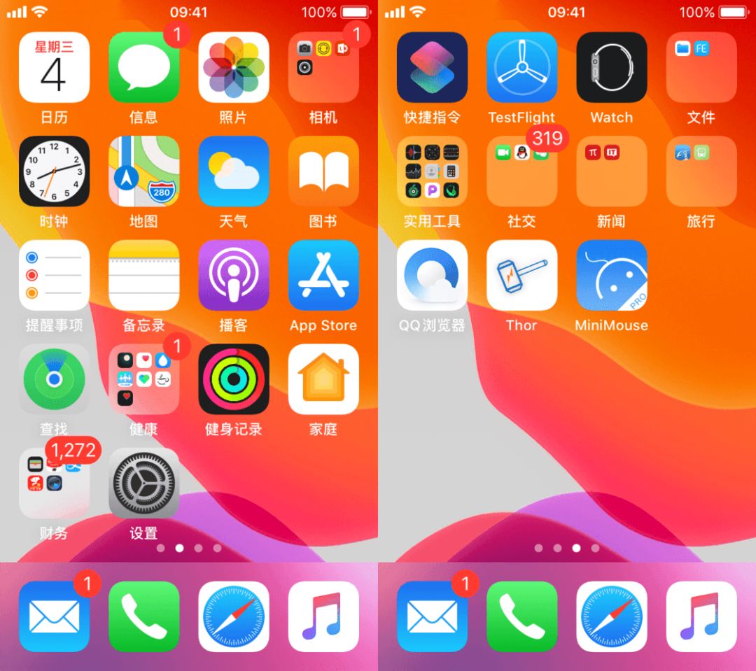 尽量将应用排布在第一页中,按照「常用」、「按类型分类」、「低频」三大分类进行拜访,日常使用的放置于桌面,其余则按照分类放置于文件夹中,文件夹内同样按照使用频率进行排序。