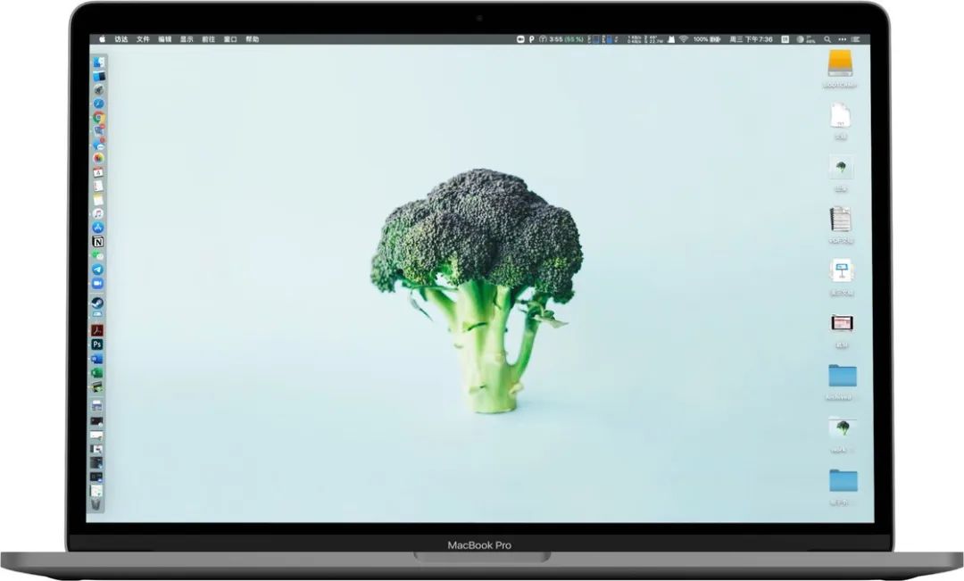说起主屏幕,我喜欢各个设备的壁纸都差不多,所以我的 iPad、iPhone 和 Mac 的壁纸都是同一张西兰花(笑)。在这张照片上,跨设备的尺寸问题用 Photoshop 和内容识别填充就很容易解决。