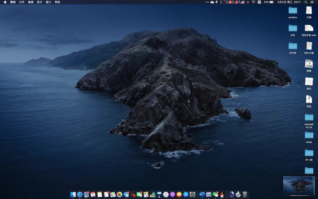 Mac 是工作和生产力的重要工具,因此桌面空间的简洁很重要。macOS Mojave 引入的 Stack 功能是强迫症福音,我也用它来管理桌面上的文档、图片和屏幕截图。一些长期不用的文件就会进入「Archived」文件夹。工作、学习文件入口就是「Work」文件夹。最近我突然喜欢把 Dock 放在左侧,这倒是没有什么理由🤦♂️。macOS 通过触控板手势很容易在窗口层叠的情况下显示桌面,配合触发角的合理设置效率会更高。